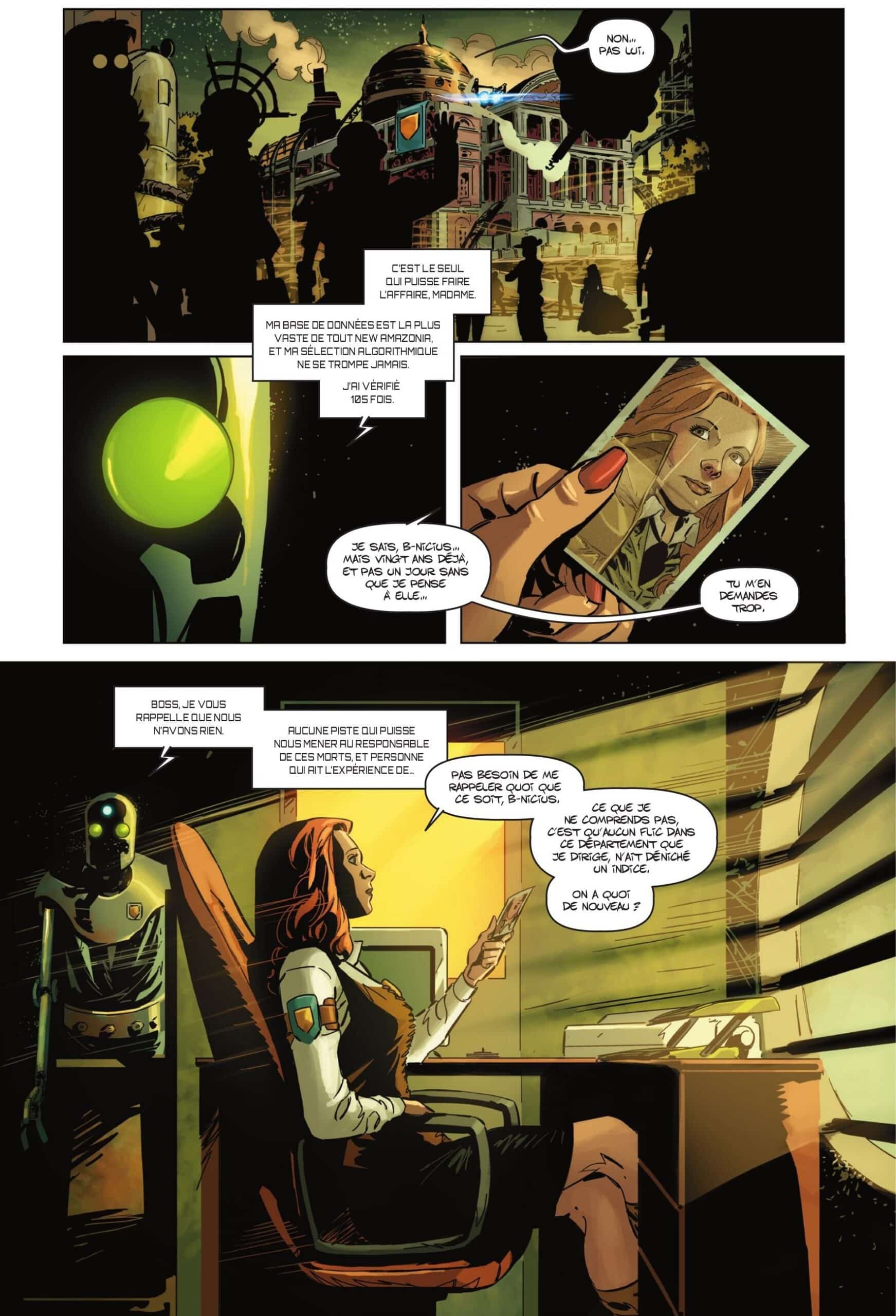 Elle voit des renards la cheffe de la police de New Amazonia. Avec son robot très évolué, B-Nicius, elle est confrontée à une série de morts violentes liées à une drogue terrifiante, plaisir pendant cinq jours et organes qui implosent. Pas une piste et d’après les calculs de B-Nicius, le seul flic qui peut résoudre l’affaire, Santos, est planqué dans la jungle. En prime vingt ans plus tôt il a fait tuer Simone la sœur de la commissaire Marlen. Mais on ne joue plus. Un commando doit le ramener d’urgence lui et Horace son lapin. Santos va faire de la résistance mais il a été un brin amoché, bras mécanique et divers. On le rapatrie et confrontation avec Marlen. Pas le choix Santos et il n’est plus vraiment au niveau alors on lui colle un agent C tout autant tordue que lui, C-Cilia qui va le mettre au pli. Elle lui fait un topo sur cette drogue qui transforme en play-boy ou girl, les rêves en réalité et au final en mort atroce.