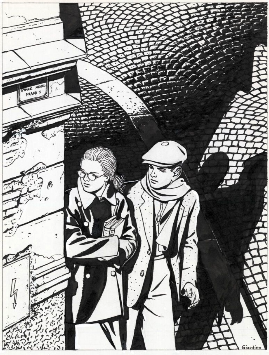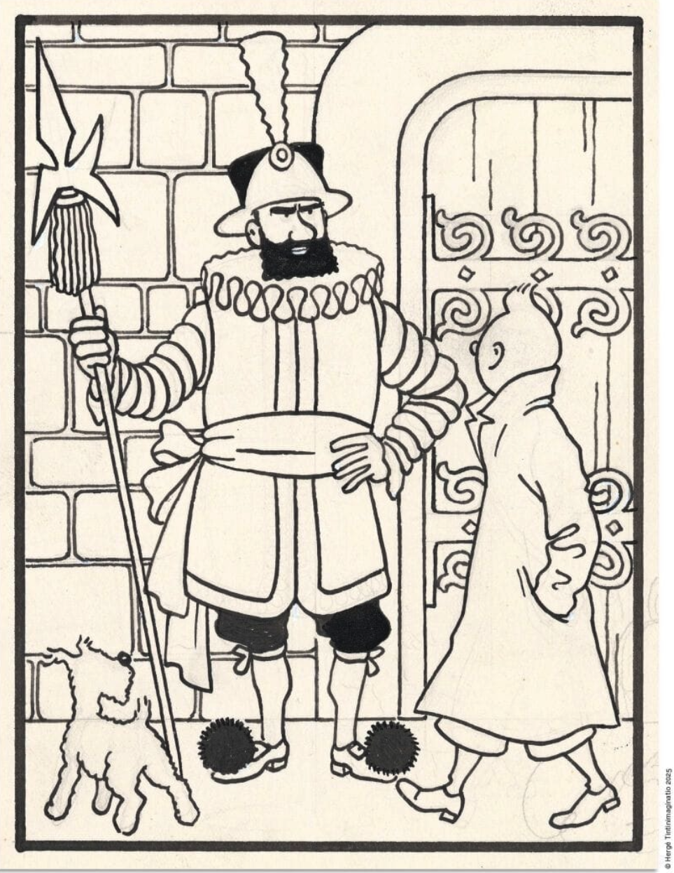 Au programme donc une couverture de Blueberry par Giraud (130 000 euros) et du Hergé. Ce seront les poids-lourds de cette vente. On a un faible pour Juillard avec de très belles illustrations Plume aux vents, Les 7 vies de l’épervier, du rare Cahier bleu et du Blake dont la couverture de Signé Olrik. Pour Ralph Meyer ce sont des planches des Undertaker. Il y a aussi du Largo Winch avec Philippe Francq, du William Vance pour XIII, Jacques Martin pour Alix , Bilal, Moebius, Chaillet, Manara, Franquin ou Gibrtat. Plus un exceptionnel Giardino. Le choix est vaste mais les estimations commencent dans les 4000 euros pour grimper à 70000 avec Hergé pour Le Sceptre d’Ottokar (T.8), Casterman , une illustration originale pour un album à colorier, réalisée en 1944, accompagnée de son certificat d’authenticité. Une encre de Chine sur papier 17,3 × 21,2 cm (6,81 × 8,35 in.) Tous les lots seront exposés à la galerie Maghen à Paris du 25 au 29 novembre 2025.
