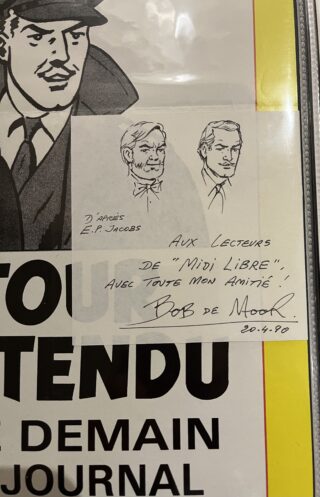 Bob de Moor a signé une belle œuvre personnelle (Barelli, Cori, Tric, Oncle Zigomar), et sa aussi travaillé sur des séries majeures de la BD comme Lefranc. Gilles Ratier, auteur déjà de la biographie illustrée de Jean-Michel Charlier en 2013, de nombreux dossiers historiques sur la BD est rédacteur en Chef de BD Zoom. Un pionnier dans son genre Gilles Ratier. Qui sait à merveille transmettre sa passion et dans le cas de Bob de Moor transmettre l’histoire d’un maître du 9e Art. Il a pu bénéficier de nombreuses sources et de l’accès aux archives de la famille De Moor, des photos et documents provenant des Studios Hergé et des agendas personnels de Bob De Moor et bien sûr Blake et Mortimer. Il était venu à Montpellier au Midi Libre quand j’avais choisi de publier Sato 2. Un souvenir émouvant, un homme charmant, inoubliable. Ratier lui rend aussi un hommage mérité pout toutes ces années au service de la BD.