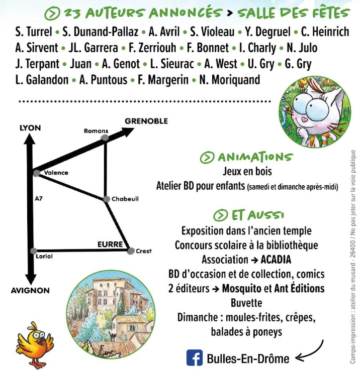 On peut suivre la préparation du festival et la présentation des autrices et auteurs sur le Facebook Bulles En Drôme