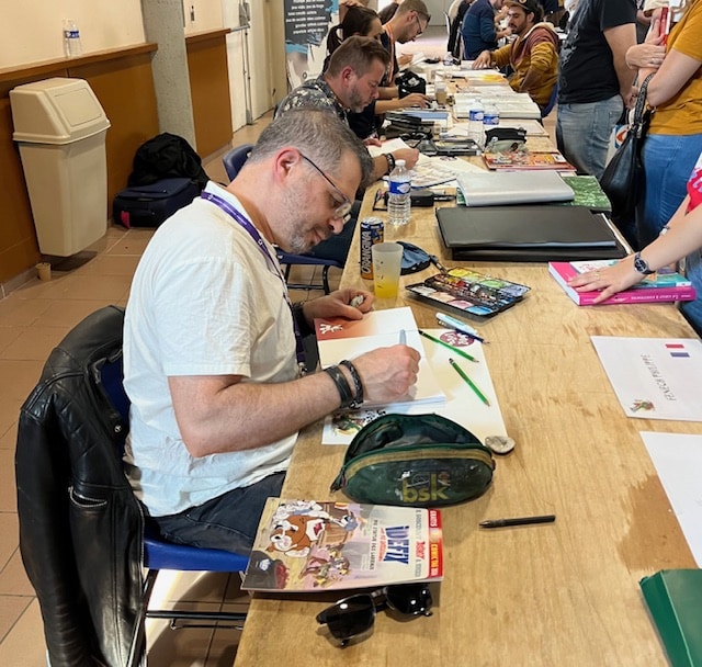Un premier jour en ce samedi 14 septembre 2024 qui a vu une très belle affluence en particulier l’après-midi au Festival BD de Fabrègues Centre José Janson 3 rue Georges Pompidou. Parking et entrée gratuite. Tous les auteurs étaient au rendez-vous de l’association Jetez l’encre. Des découvertes, trois bouquinistes, des éditeurs et à ne pas manquer en ce dimanche dernier jour de festival une rencontre sur « Dessin et jeu vidéo, les métiers graphiques du 10e art » ce dimanche après-midi présentée par Gaël Chauvet et Elise Ramseler.