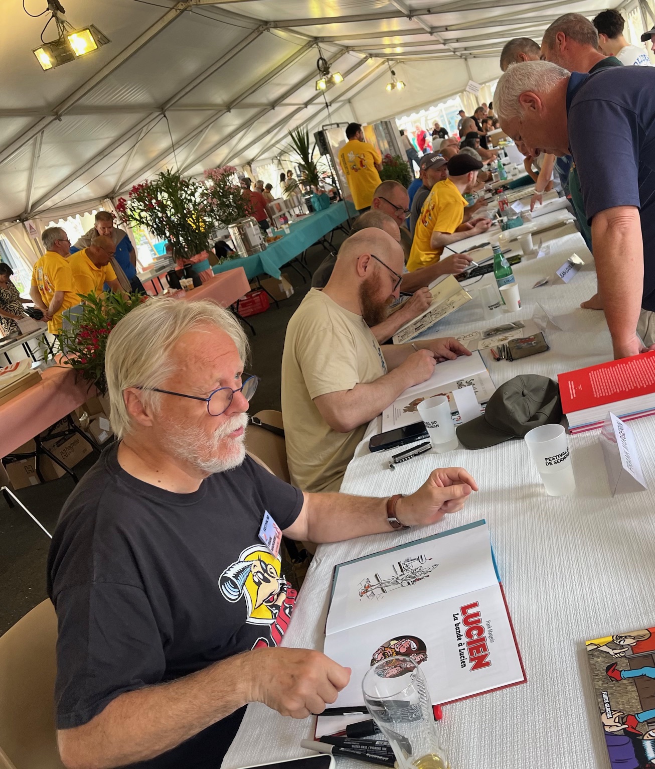 25 auteurs sont annoncés dans la salle des fêtes : F. Margerin • S. Dunand-Pallaz • S. Turrel • S. Violeau • Princesse H • L. Le Neouanic • P. Larbier • C. Heinrich • Poupard • Jez • D. Alcante • F. Rhodain • A.Grande • Kieran • R. Boschi • Y. Le Pon • A. Bootle • B. Jurdic • V. Lepointe • E. Hubsch • A. Chroniques • H. Bozino • Tim Charx • A. Sirvent • N. Rouviere
