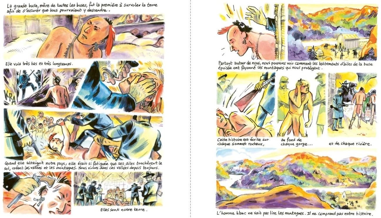 Chemins est une nouvelle collection de romans graphiques chez Nathan BD. Chaque album retrace le parcours de femmes et d’hommes contraints à l’exil et qui, au péril de leur vie, ont emprunté des chemins aujourd’hui reconnus comme des lieux de mémoire. Tels les Amérindiens Cherokees conduits de force dans une réserve, par la tristement célèbre Piste des larmes qui ouvre la collection ou les Tibétains qui ont traversé l’Himalaya pour rejoindre l’Inde, ou encore les résistants de la seconde Guerre Mondiale qui ont emprunté le Chemin de la Liberté dans les Pyrénées pour échapper aux Allemands. En résume des paysages qui font l’Histoire.