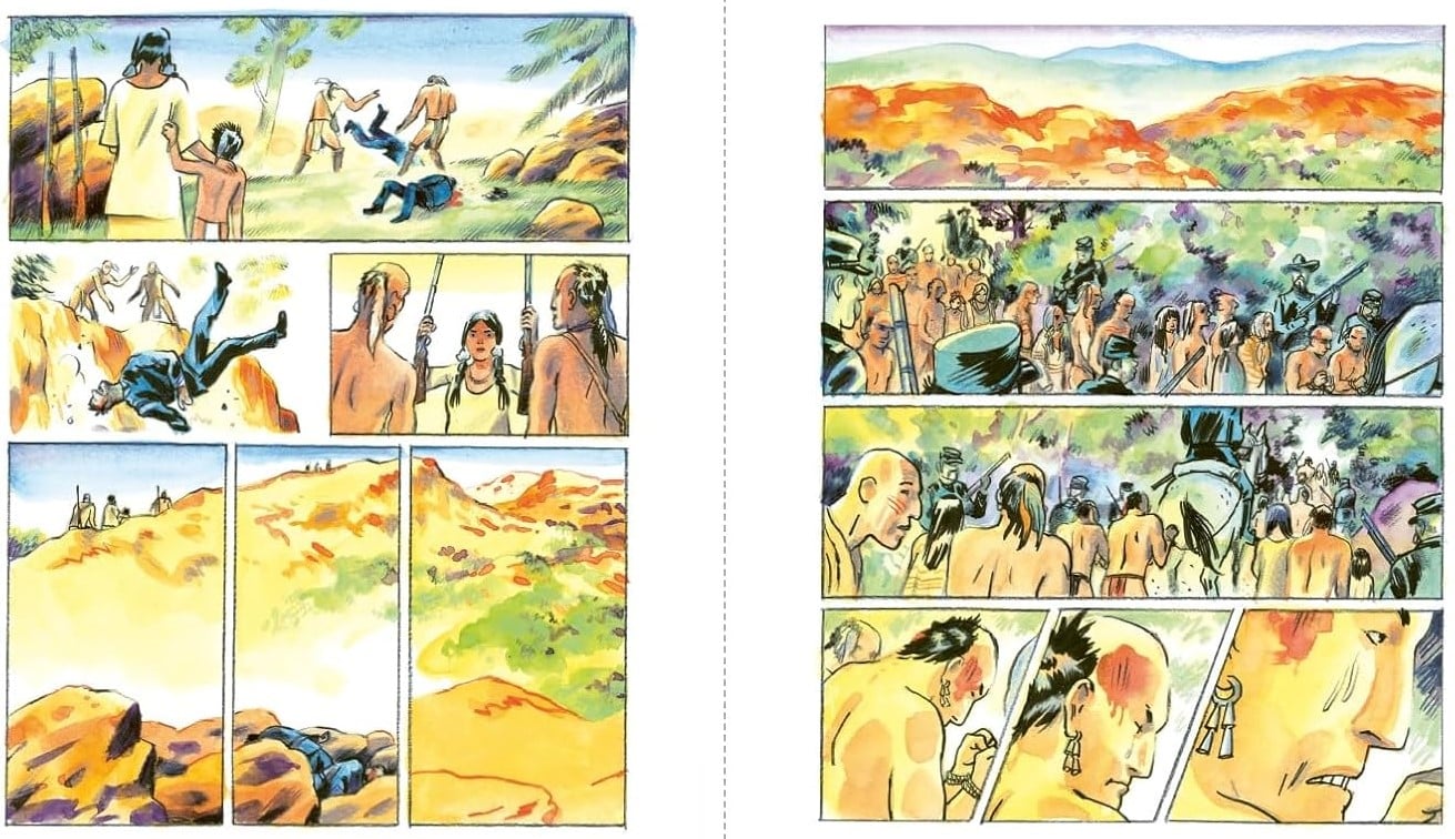 Une très bonne reconstitution à travers le destin de quatre Cherokees d’un épisode de la Piste des larmes, déportation armée des Cherokees, Creeks, Choctaws, Seminoles et Chickasaws entre 1831 et 1838. De camp en camp, sans soins, vers l’Ouest, ce sera une tâche indélébile sur le drapeau des États-Unis. Le sacrifice des Amérindiens n’est pas loin du génocide déguisé. Alcool, réserves, mépris des Blancs et histoire revue dans les westerns, on a avec La piste des larmes un ouvrage qui fait acte de mémoire et montre comment même un pays qui se dit terre de liberté a pu commettre le pire sans oublier le racisme latent. Un dessin convaincant.
