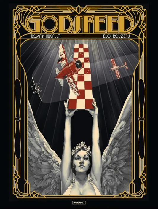 On l’attendait ce tome 2 de Godspeed car retrouver le dessin de Romain Hugault, ses avions est toujours un plaisir qui émerveille, vraiment. Le format aussi comics US joue un rôle non négligeable, bien maîtrisé à l’époque des grands records de vitesse aux USA. On en avait largement parlé avec Romain Hugault pour le dossier de ZOO le Mag sur Godspeed. Eloi Rousseau est bien sûr au scénario dans la collection Cockpit chez Paquet. Il y aura quatre formats classics enrichis de pub, de couvertures, de textes. Ensuite deux albums grand formats sont prévus dont le premier est sorti. Du haut vol sur Geebeee.