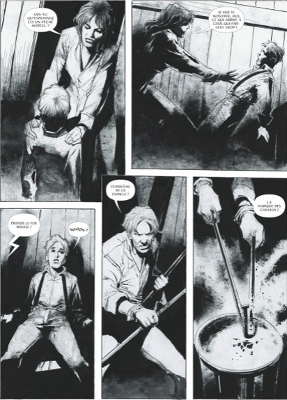 La suite est une très subtile succession de rebondissements, de pistes plus ou moins fausses. Qui est l’éventreur de White Chapel ? Quels liens entre tout ce joli monde assoiffé de chair fraîche ? Un dessin très fort, puissant qui ne cache rien mais pourtant ne choque pas. On sait où on est sans équivoque sans pour autant tomber dans le grand guignol. L’intrigue est très bien bâtie, les regards sont impressionnants. Lutte à mort évidemment et où l’amour est face à des démons invincibles et tortueux. Une mise en scène qui fait frissonner. Un bon dossier sur le duo en fil d’album avec de nombreuse références cinématographiques ou comics. Cannavó et Corrado Roi signent un album rare.