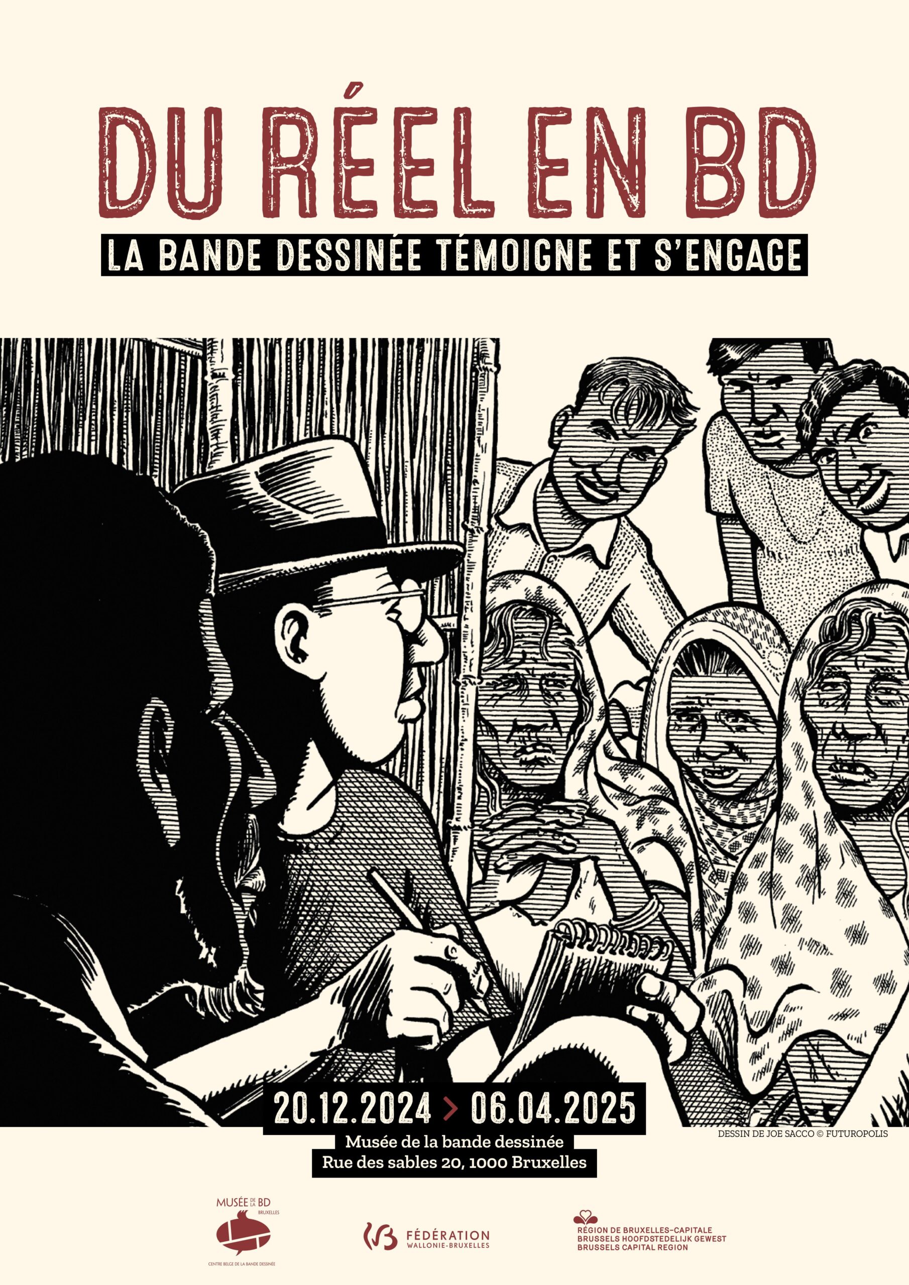 C’est au Musée de la BD à Bruxelles que se tient du 20 décembre 2024 au 6 avril 2025 l’exposition Du réel en BD, la bande dessinée témoigne et s’engage. Témoignage, action de témoigner, de rapporter ce qu’on a vu, entendu, ce qu’on sait. Loin de l’atelier, l’expérience devient reportage sur le terrain et enquête. Le Musée de la BD célèbre ainsi la créativité du Neuvième Art et sa capacité à encourager la découverte, le dialogue et l’ouverture sur le monde.