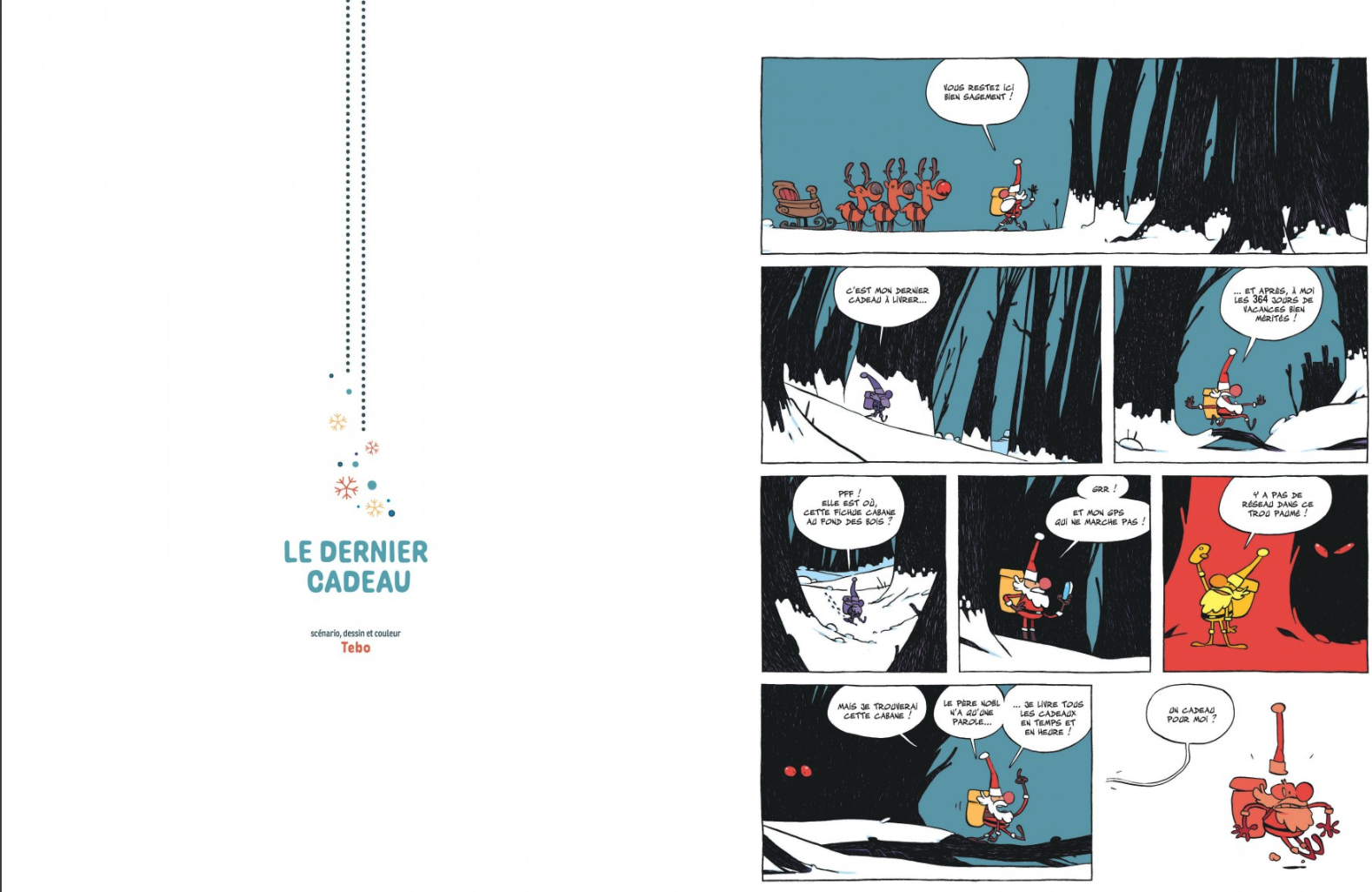 Dont on ne vous dira rien de plus car les ouvrir pour voir les planches serait enlever beaucoup de plaisir au petit garçon à qui on va confier la BD. Mais on peut parler des auteurs qui ont illustré de leurs histoires courtes ce calendrier. Il y a Marianne Alexandre, Adeline Avril, Marie Avril, BenBk mais aussi Mathilde Domecq, Crisse, Feroumont, Guarino, Guerrero et Fabrice Parme ou encore Tébo et Kid Toussaint. Tous les autres sont à découvrir.