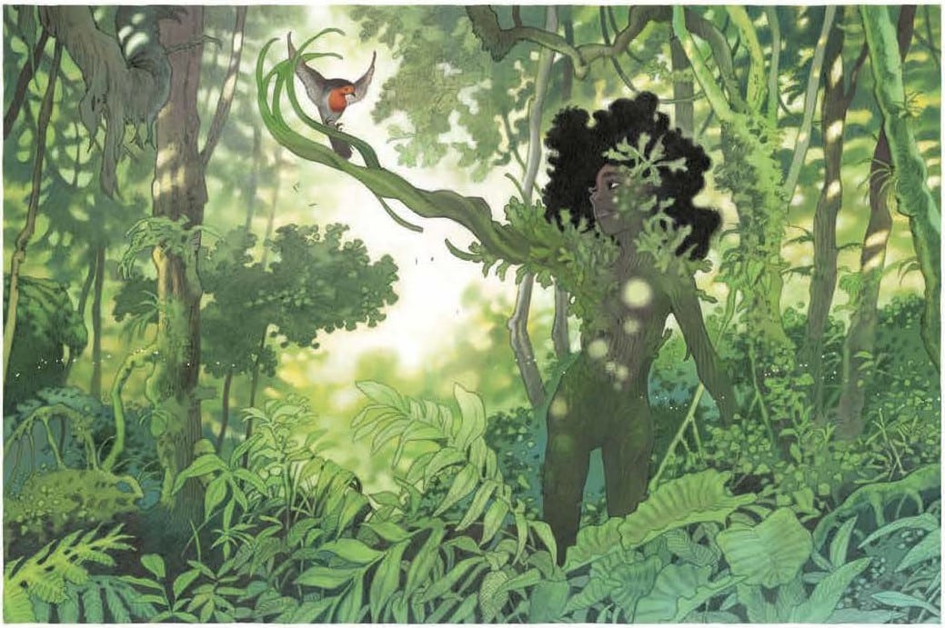 Les mutations se multiplient, sont irréversibles, le paysage ,villes comprise devient vert. On accepte ou on a peur, on est heureux ou terrifié. Des groupes se forment et les enfants en sont les leaders. On comprend bien que derrière la poésie du discours on parle de l’acceptation des autres, de cette nature qui a décidé qu’il était temps de tout faire pour que tous survivent ensemble, évoluent. Il y a de l’émotion, de l’espoir au fil de ces très belles pages, de la violence encore par ceux qui refusent et sont prêts à tout pour casser le mouvement. Du noir et blanc sauf la fin, l’été, en couleur bien sûr pour une jungle où le vert est omniprésent. Remarquable, un appel à la compréhension des autres.