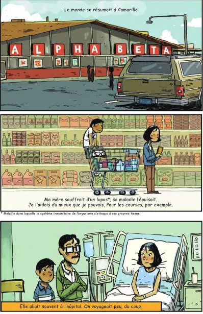 Un compte rendu à la fois d’un voyage lointain, d’une jeunesse relativement ennuyeuse. Dan Santat dont on avait beaucoup aimé Panique Aquatique signe ce gros pavé de plus de 306 pages avec annexes. Un jeune américain près de Los Angeles a une maman malade et passe son temps à ne pas faire grand-chose. Il va partir en Europe dont il ignore tout. Une large part auto-biographique et une chronique très en retard sur la parution. Un trait clair et bien posé pour un bouquin typiquement US.