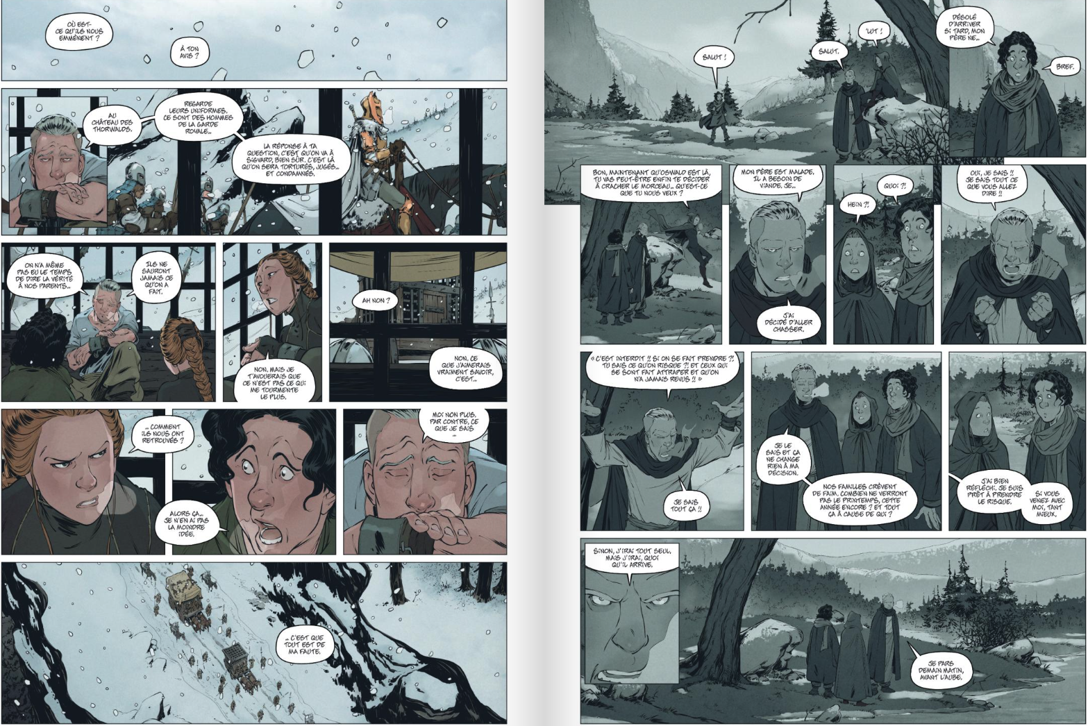 Un premier tome d’un diptyque qui tient très bien la route, bonne surprise. Une aventure sur fond de Moyen-Âge, des monstres à origine humaine, un trio très sympathique qui va semer la pagaille, Le Roi des Fauves a été adapté d’après Aurélie Wellenstein romancière fantasy et BD. On est bien sûr en plein fantastique mais pas que. On peut aussi y voir une part sociale et politique. David Chauvel est au scénario sur un dessin réaliste très bien maîtrisé et puissant de Sylvain Guinebaud (Robilar ou le maistre chat).