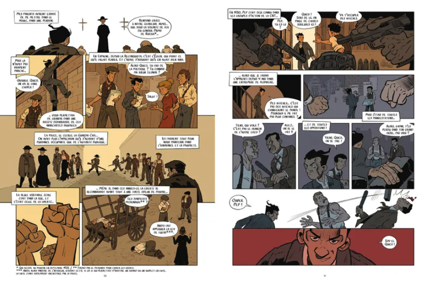 Dès l’enfance Quico Sabaté, El Quico a un sens inné de la justice sociale. Avec lui son frère Pep. L’anarchisme va les séduire. Mais bien plus tard dans le train où blessé il essaye de s’échapper, Quico se souvient des grands moments de sa vie. Enfant il joue au révolutionnaire. La CNT (Confédération National du travail) est puissante. Le dictateur militaire Primo de Rivera accède au pouvoir. On casse les grèves. 1930 à Barcelone la CNT s’arme et braque les banques pour essayer de nourrir la révolution. De Rivera meurt, l’Espagne devient une République pas pour longtemps. C’est déjà la scission entre la Gauche et les Anarchistes. Juillet 1936 la guerre d’Espagne éclate. Franco est soutenu par l’Allemagne d’Hitler et l’Italie de Mussolini. Quatre ans de tueries qu’ignore la France qui à son tout sera envahie, capitule. Des soldats espagnols sont à la pointe de la Libération de Paris. Mais la paix ramènent les anarchistes chez eux où une police politique franquiste est formée. Assassinats, exécutions par le pouvoir, le fascisme espagnol tient le pays sous sa coupe. Quico continue à se battre. Les forces libertaires de l’intérieur sont bien organisées et le pouvoir les craint. Il faut les détruire.