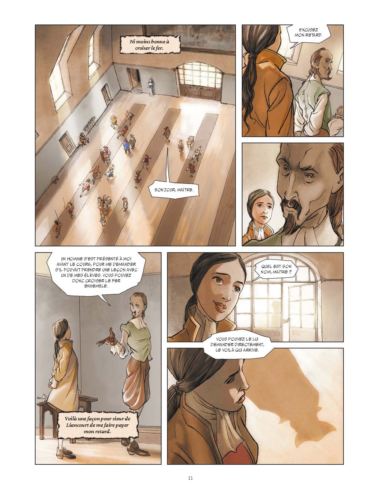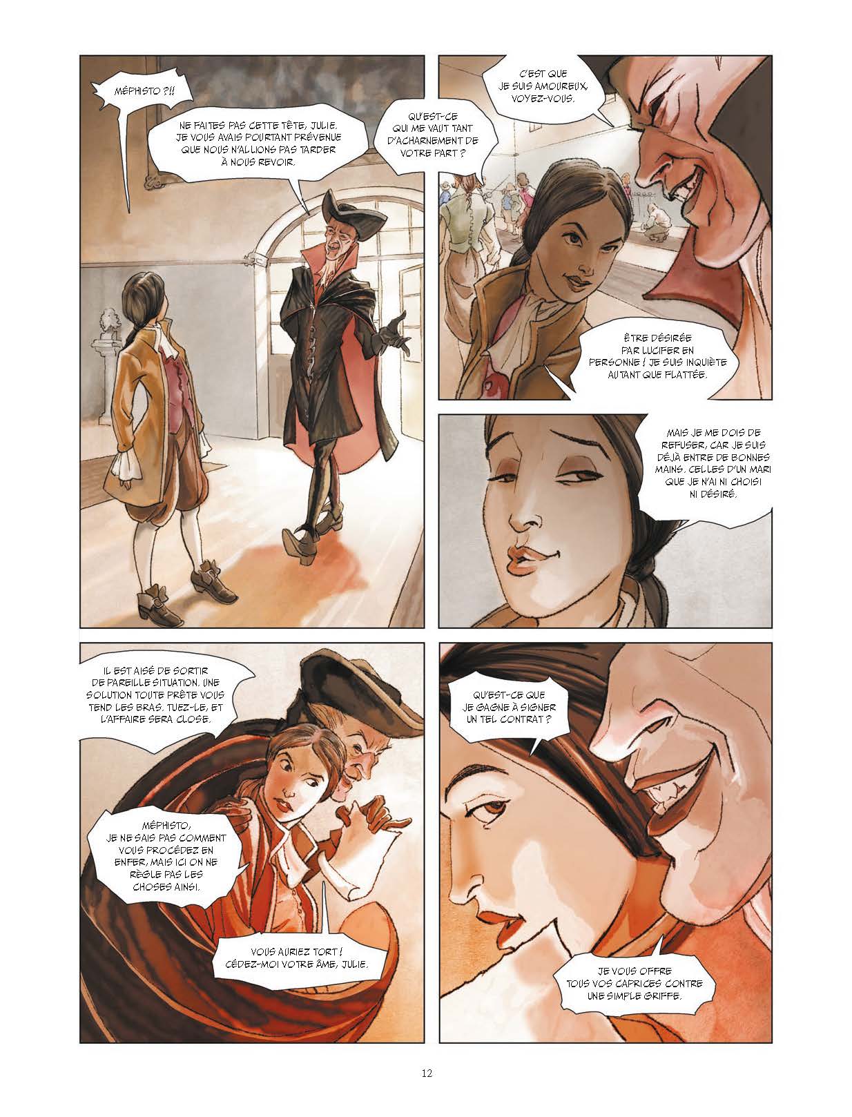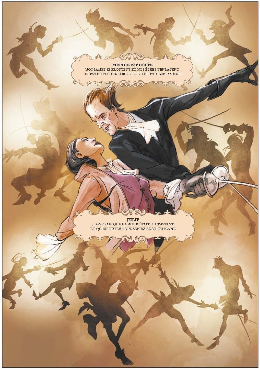 Une digne et belle émule de la Fille de d’Artagnan aurait-elle fait un pacte avec l’âme damnée de Lucifer ? Que nenni car elle du répondant Julie Maupin ex demoiselle d’Aubigny ? Une pour toutes est une jolie pépite signée par Dominique Monféry (La Neige en deuil) qui a su bâtir sur une adaptation un récit remarquablement écrit (rare de nos jours) de cape et d’épée dont une femme est la bretteuse (oui une escrimeuse hors normes). Pourrait-on soupçonner qu’en 1668 Méphistophélès soit un brin amoureux de Julie, qui elle par contre douée à l’épée l’est aussi en amour. Que du bonheur qui plus est joliment dessinée cette aventure diaboliquement drôle, pleine d’humour et d’ironie qui virevolte.