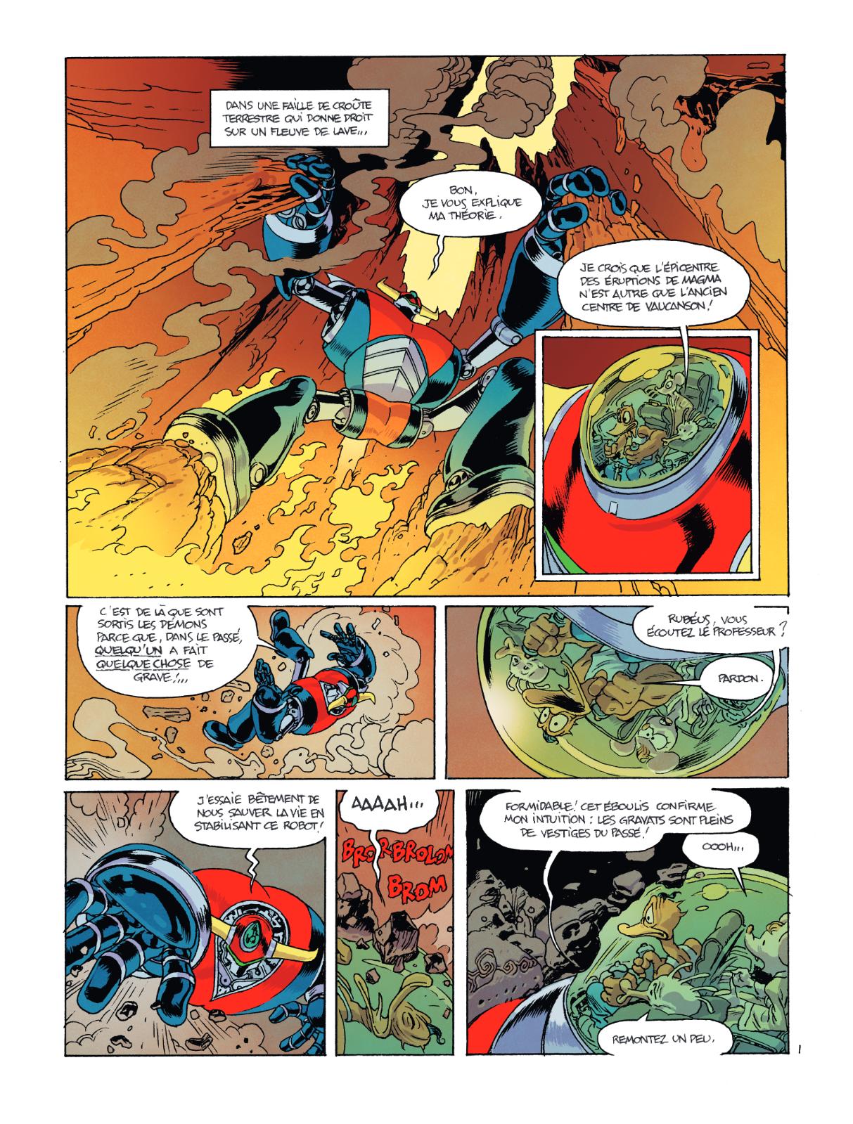 Le trio Joann Sfar, Lewis Trondheim et Vince est de retour pour nous conter les aventures de Rubéus Kahn, le canard badass qui n’a rien à envier à Donald et John McClane. Guidés par l’antique tête du professeur Cormor, Rubeus Khan et Adélaïde Perséphone plongent dans les confins de la terre craquelée pour fuir les forces de Stanislas de Vaucanson. Sous terre, nos héros font l’hypothèse que l’épicentre des éruptions de magma ne serait autre que l’ancien centre de Vaucanson, peut-être y découvriront ils la cause des incursions de démons ?