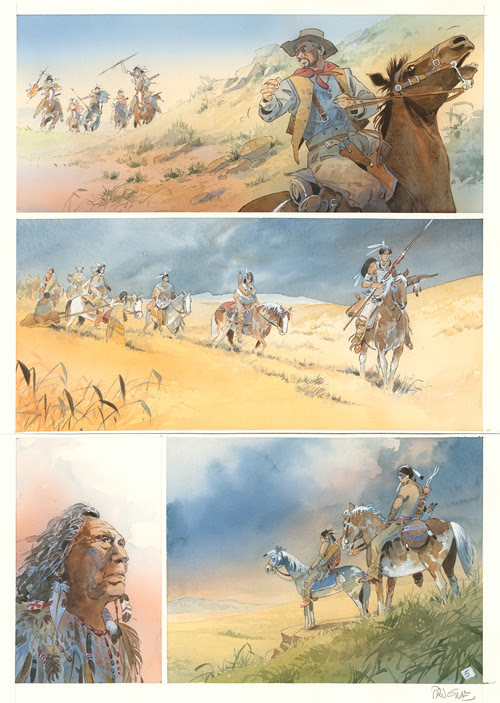 Dans la lignée d’Iroquois et de Frenchman, Patrick Prugne revient à ses sagas indiennes et à l’histoire coloniale américaine avec Cheyenne. Le récit se déroule en 1864 et retrace les événements qui ont mené au « massacre de Sand Creek ». Prugne nous plonge au cœur des grandes plaines, dans le vaste territoire des peuples autochtones, bafoué par des hordes de colons au mépris des traités censés garantir la préservation de leurs terres. L’exposition présentera des planches originales issues de l’album et des illustrations réalisées spécialement dans le cadre de cette huitième exposition avec Patrick Prugne. L’occasion de découvrir ou redécouvrir le très beau travail de ce maître de l’aquarelle qui retranscrit, au travers d’une éclatante palette de couleurs, les sublimes paysages des grandes plaines américaines.