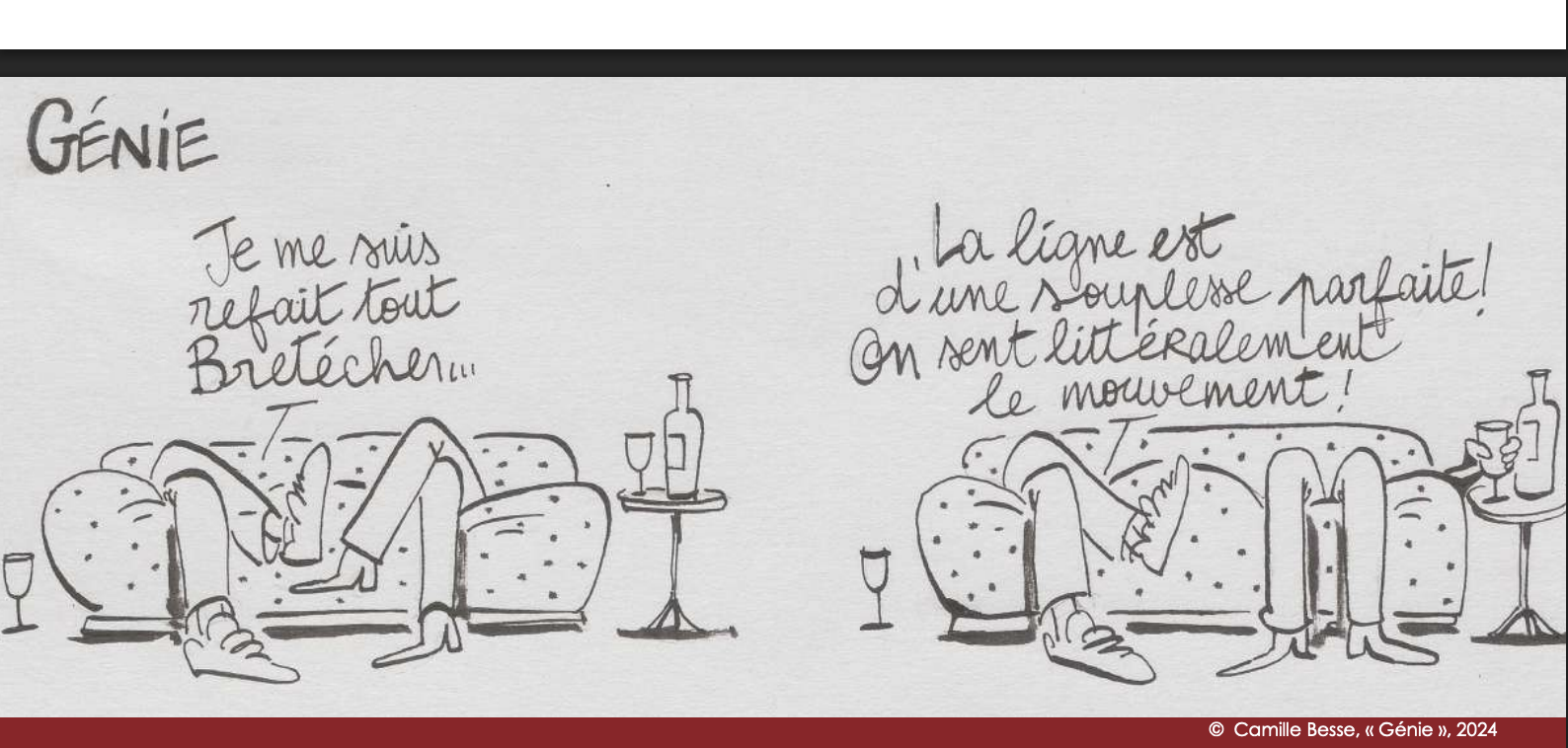 Au fil de l’exposition seront aussi exposés des dessins réalisés en hommage à Claire Bretécher par les autrices et auteurs suivant.e.s : Louise Angelergues, Nine Antico, Félix Auvard, Camille Besse, Tiphaine de Cointet, Clothilde Delacroix, Florence Dupré La Tour, Terreur Graphique, Magali Le Huche, Lisa Mandel, Aude Picault, Emilie Plateau, Maëlle Réat, Anne Simon, Thibaut Soulcié, Zoé Thouron et Lewis Trondheim.
