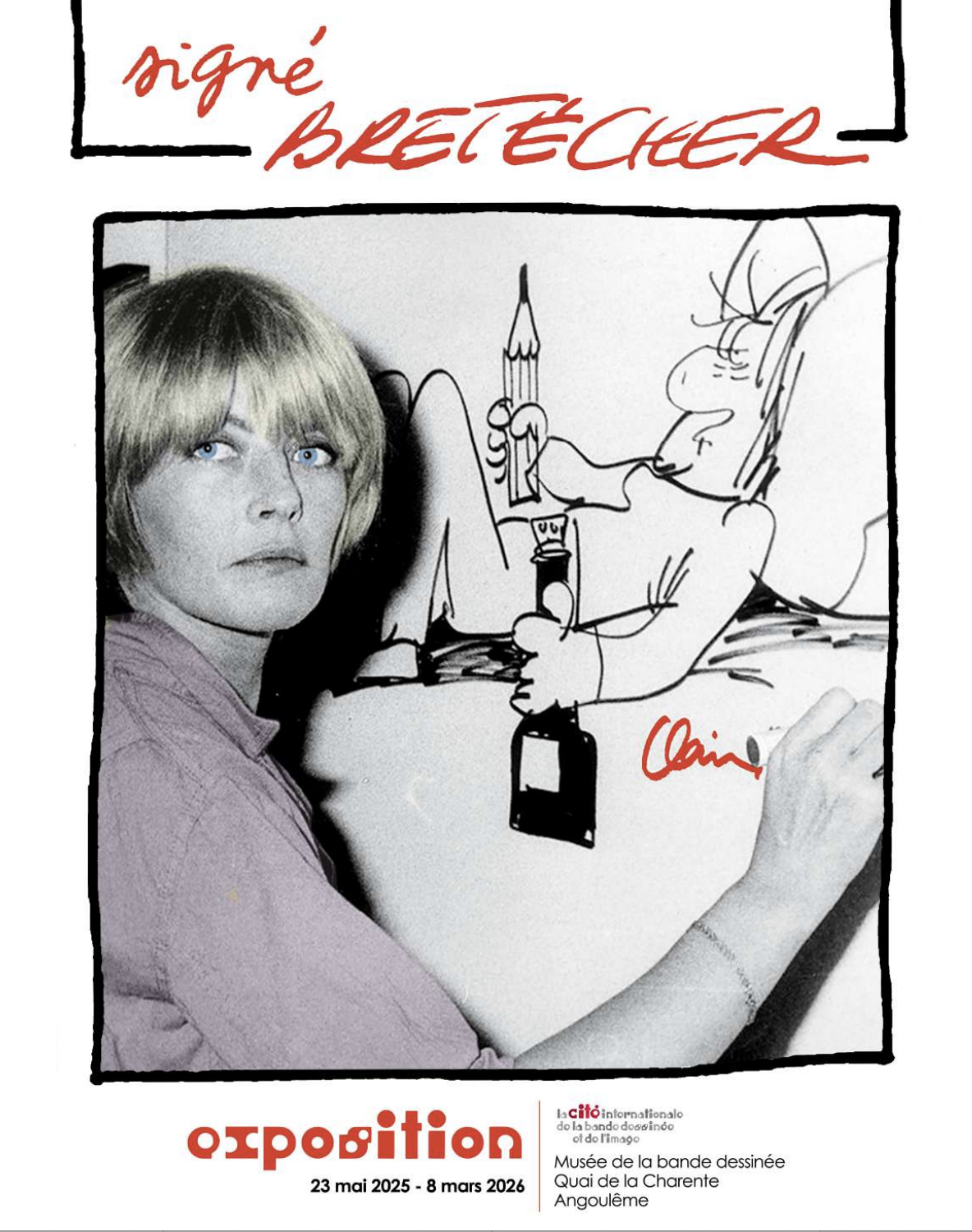 Du 23 mai 2025 au 8 mars 2026, la Cité internationale de la bande dessinée et de l’image d’Angoulême rendra hommage à Claire Bretécher (1940 – 2020) en lui consacrant une rétrospective retraçant le parcours de l’autrice et explorant les aspects marquants de son œuvre.