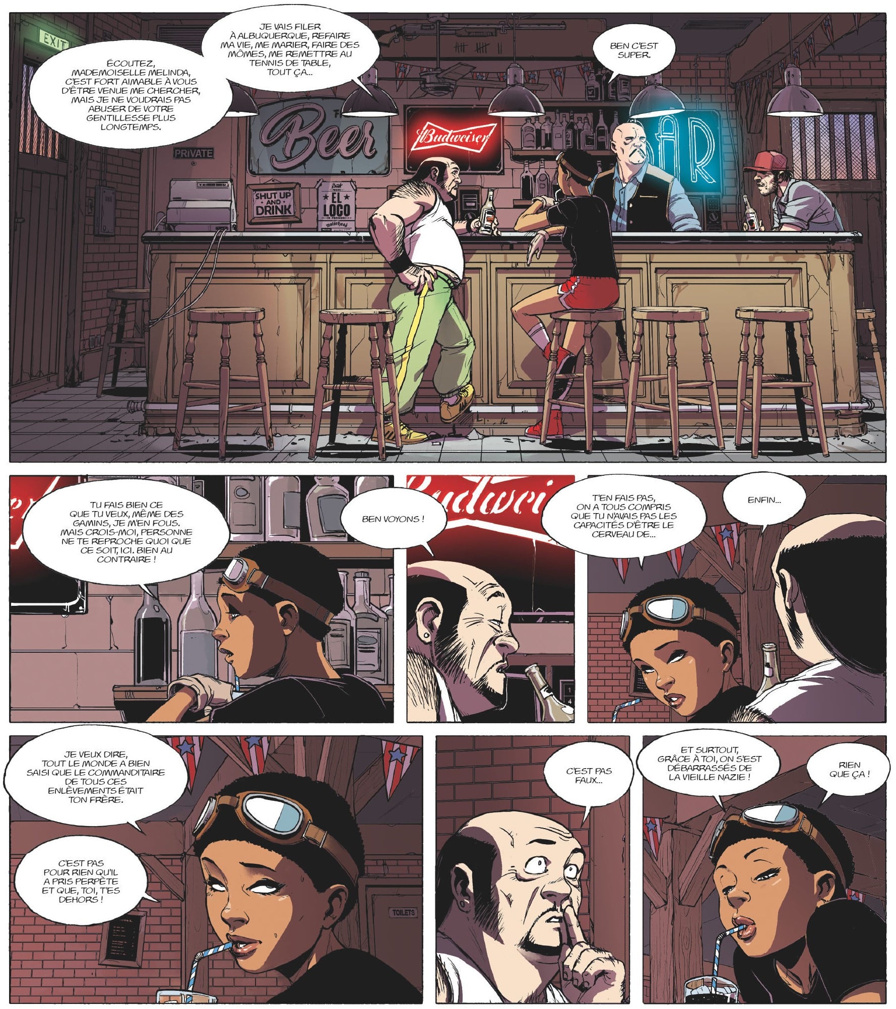 Du Audiard revisité par San Antonio, du jouissif total avec une galerie de cas d’espèces qui ne vont pas faire dans la dentelle. Ciselé le travail d’aiguille de Bedouel sur un dessin qui fait dans l’authentique décomplexé. On n’en dit pas trop tant c’est un beau cadeau de pré-rentrée ce Valhalla Bunker qui comptera trois tomes. On va de surprise en découverte, Fabien Bedouel mène la danse sans faux pas.