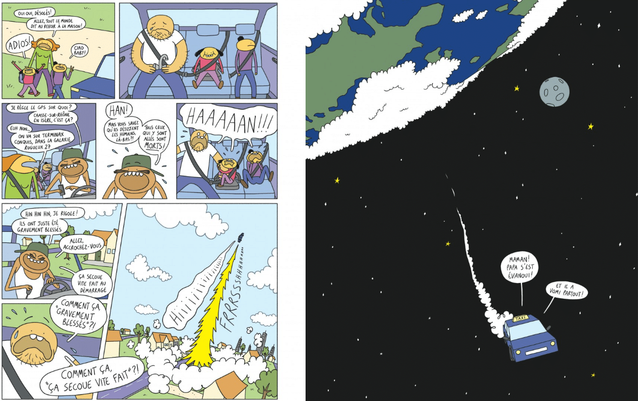 Un gentil délire qui n’a pas le temps de faire la moindre pause. Les Aliens ne sont pas doués même si ils ont des yeux partout. On joue au bras de fer et on découvre que les os existent sur Terre. Super Udd-Udd en fera les frais. Une parodie du monde qui nous entoure, de nos travers. On s’amuse vraiment parce que personne ne se prend au sérieux et que la famille terrienne est une vraie caricature. L’absurde est roi mais tout finalement fonctionne sans que l’on se pose des questions existentielles. Etonnant mais réussi. A suivre.