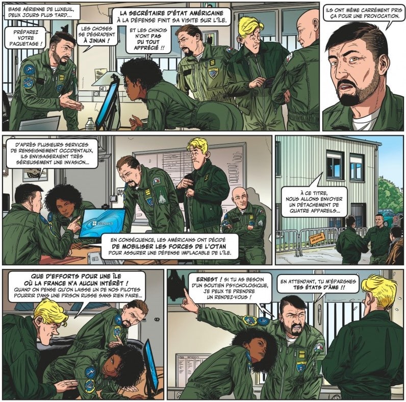 Sous tous les cieux Tanguy et même en prison façon goulag à la Poutine, fallait pas voler un zinc aux Popovs et se poser chez eux. Fin du diptyque précédent mais on embraye avec ce bon Laverdure qui fait des caprices alors que le monde est au bord du gouffre à Jaïnan-Taïwan que le Chine veut récupérer. Dans ce tome 12 Trahison on rebat les cartes, on rejette les dés dans un contexte international qui est très proche du nôtre si on y rajoute la Khuranie-Ukraine. Bon on a tous compris que les Chevaliers du ciel ont du pain sous les ailes, le monde à sauver à moins que Tanguy ait viré sa cuti. Bouh le vilain traître. Non ? Mais si, enfin on doute. Scénario par Patrice Buendia et Fred Zumbiehl, Sébastien Philippe au dessin pour ce nouveau premier volet d’un non moins nouveau diptyque.