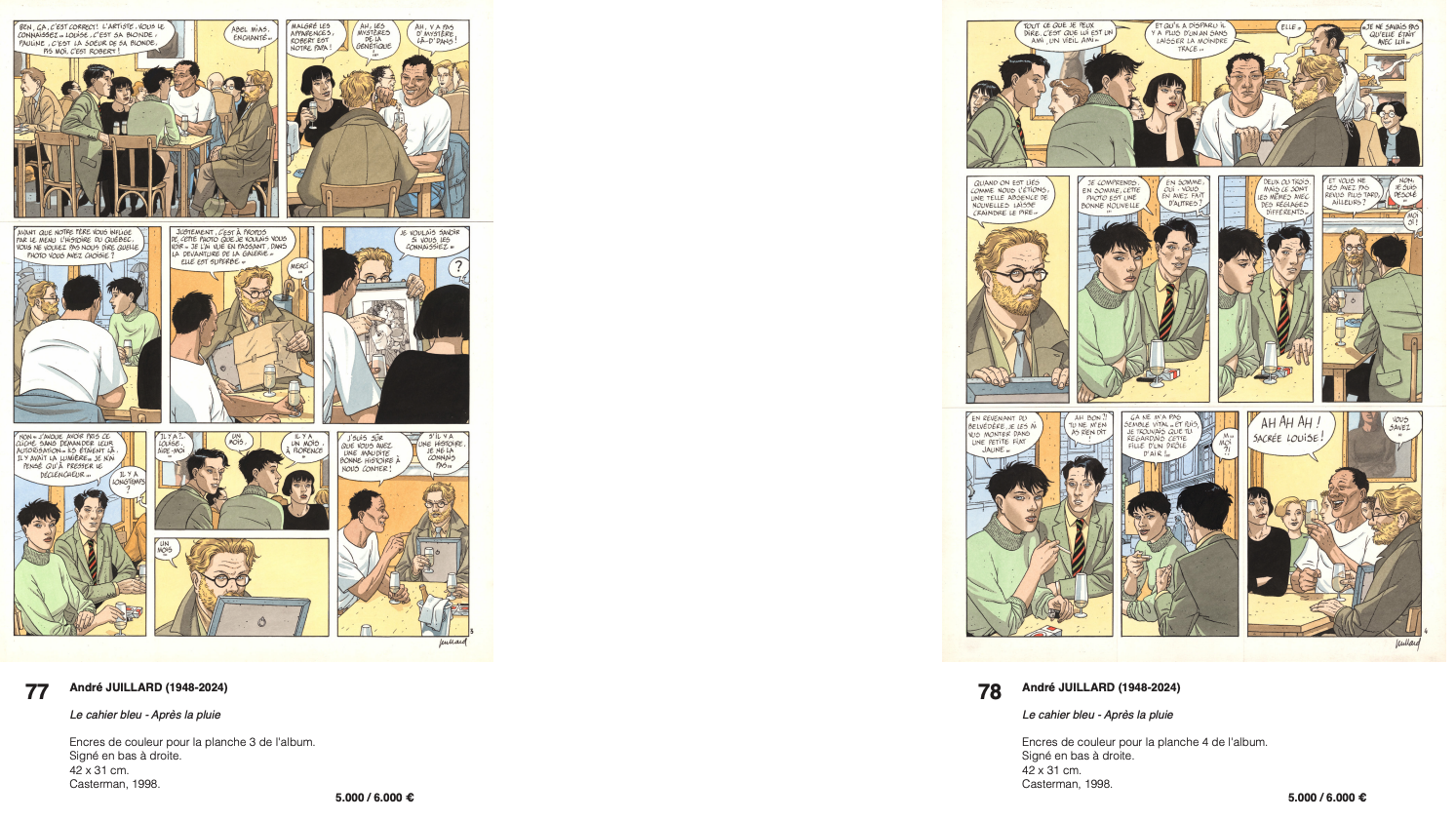 Alors au programme du Juillard accessible, des Tardi encore et tant mieux. Un superbe Giardino, du Franquin avec Lagaffe, un très amusant et charmant Gibrat, et un ensemble Gotlib très riche qui vient de la famille. On peut citer aussi Manara et une planche d’Hubinon qui devrait monter haut avec une estimation qui flirte avec les 25 à 30 000 euros. Loustal, Macherot, Moebius, Mézières, un Pratt entre 50 et 60 000 euros, sacré Corto, on en passe. Allez faite un tour sur le catalogue au cas où .