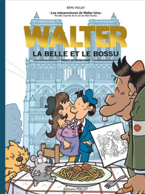 C’est un épisode méconnu de la vie de Walt Disney. Rémi Pielot l’a déjà mis en images dans deux albums. En voici un troisième, Walter la belle et le bossu. On le retrouve avec plaisir Walter qui n’est donc que oncle Walt créateur de la souris en série animée la plus célèbre au monde. Rémi Pielot, avec talent et humour, vérité historique, a suivi à la trace dans ce tome 3 de Walter qui persiste à trainer ses guêtres à Paris. Un pseudo car on ne peut à priori dire son nom au moins dans cette BD, histoires de droits chez Disney. Rémi Pielot l’a appelé Walter Iziny car sa famille était bien d’origines françaises, normandes. C’est la guerre, la première et mondiale. Walter a débarqué ambulancier dans la Croix Rouge. Pielot en a signé les strips et rattaché les différentes péripéties au futures productions de Disney. Une reprise de gags parus dans le tome 2 format à l’italienne plus des inédits mis en couleurs par Mel, coloriste du Lucky Luke d’Achdé.