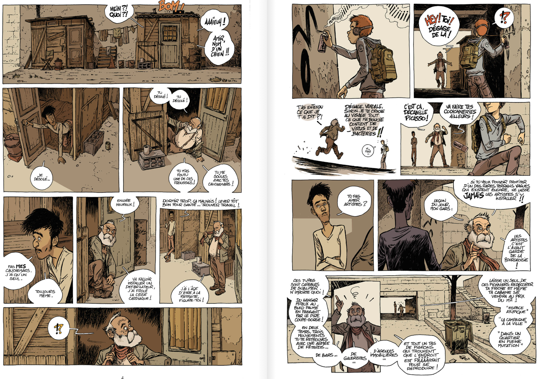 Il a vite compris Théo mais Amir tombe sur une affiche avec la photo de Whisky. Situation cornélienne avec en plus les sauvageons qui jouent les caïds matraque en main. Dérapage et la suite risque de ne pas être simple. Une belle histoire d’amitié désintéressée bien mise en images et écrite. De jolies surprises qui montrent que l’âme humaine n’est pas toujours noire. C’est drôle et triste, comme la vie.
