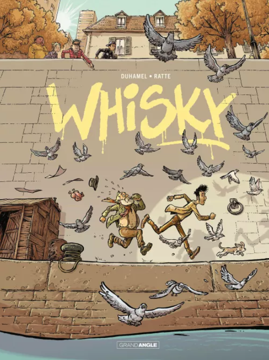 On suit David Ratte depuis Mamada chez Paquet puis avec Le Canonnier et la Petite voleuse de la Tour Eiffel. C’est donc un plaisir de le retrouver avec Bruno Duhamel pour partager ce Whisky de belle tenue, où humour, tendresse et aventure associent un duo improbable de clochards sur des quais qu’un petit chien va unir, à la vie à la mort.