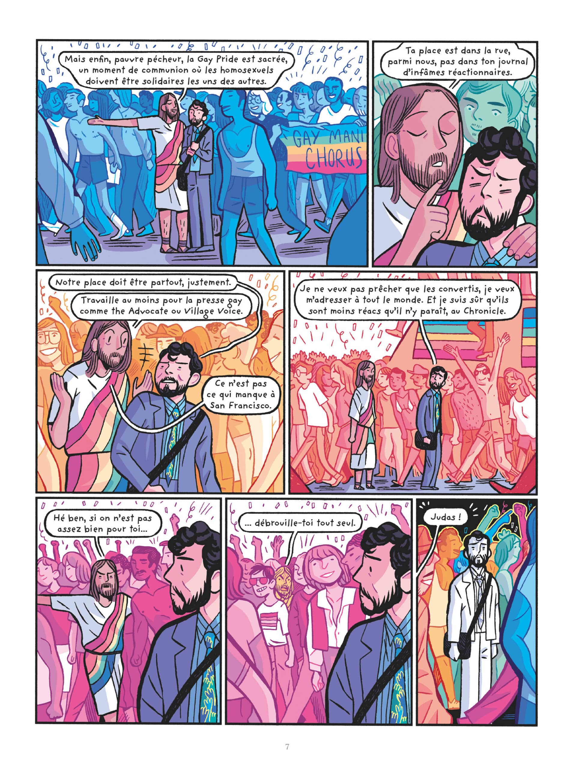 Clément Xavier (Waco horror) a scénarisé Randy Shilts et la fake news du patient zéro sur un dessin de Héloïse Chochois. Alors que les USA et le monde gay est touché en 1981 par ce que l’on qualifie de cancer homo, un journaliste du San Francisco Chronicle lui-même gay va enquêter. San Francisco est la capitale mondiale à cette époque de l’homosexualité. Shilts a rédigé la bio de Harvey Milk premier homme politique ouvertement gay et assassiné à la mairie de San Francisco. Ce qui lui vaut un job au Chronicle. Un coup de fil d’un trentenaire qui a le sarcome de Kaposi, nom inconnu d’un cancer de la peau rare qui ne touche que les vieillards et la vie de Shilts va basculer. Car le sarcome semble ne toucher que des gays et de plus ne plus nombreux. Chape de plomb sur l’info. Sauna gay de Castro, un steward de passage, Atlanta et le centre des maladies infectieuses, un médecin va parler Shilts. Tout le pays a des cas similaires de cancer gay impitoyable. Et aucune mesure n’est prise, pas de mise en garde ou de fermeture de sauna. Même Atlanta la joue cool dans un premier temps. Shilts continue et une médecin enfin lui avoue qu’on sait que c’est une maladie sexuellement transmissible. La suite montre comment en trichant un peu Shilts a réussi à faire éclater la vérité, stigmatise l’indifférence du gouvernement qui a permis sa propagation.