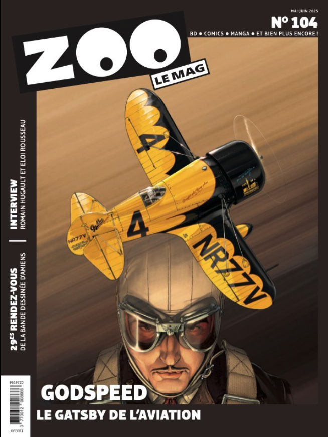 Le dernier numéro de Zoo le mag est sorti, le 104. A la une et avec un dossier intérieur Godspeed, le prochain titre de Romain Hugault, le meilleur de la BD d’aviation aux Editions Paquet. Un dossier signé par Jean-Laurent TRUC.